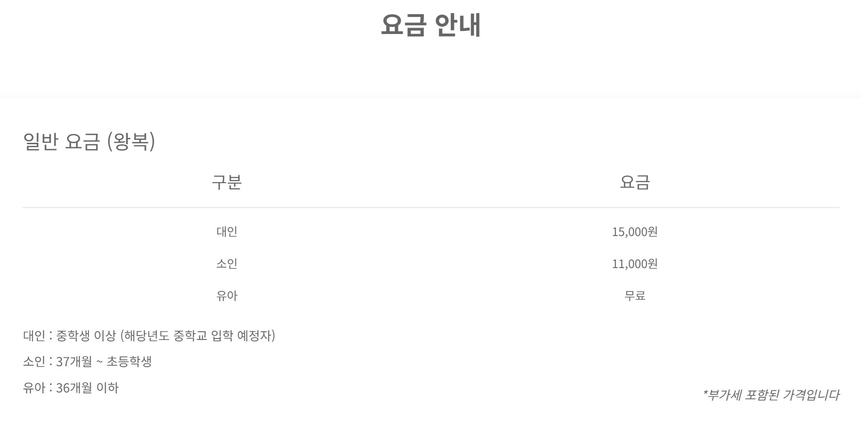요금은 성인 기준으로