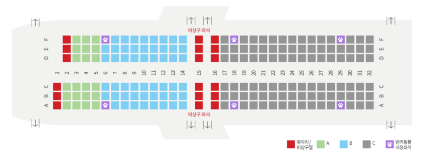 좌석 배치도를 통해 비행기에서의