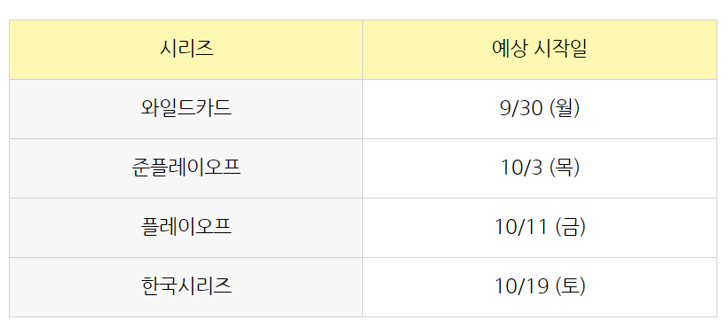 KBO 포스트시즌 예상시작 일
