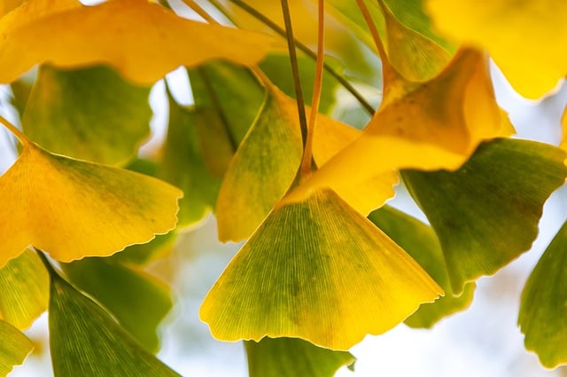 노란색과 금색의 은행잎들이